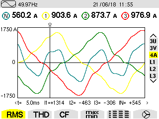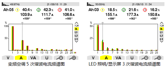 實(shí)測(cè)負(fù)載諧波電流頻譜圖: